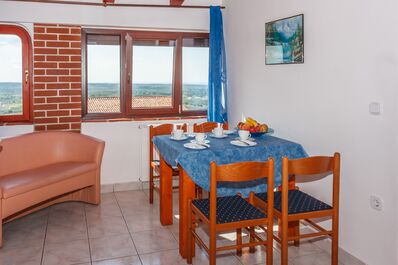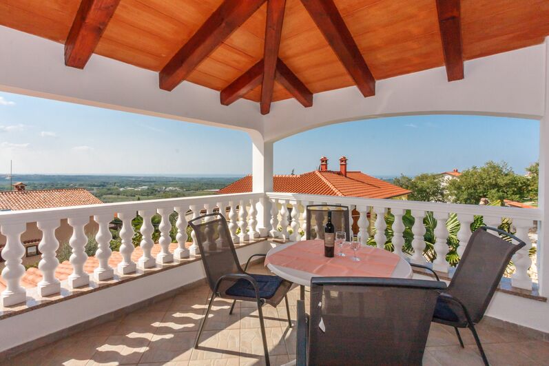 In dieser familienfreundlichen Ferienwohnung 4 im OG, in der Villa Castello mit einem schönen Meerblick auf den Golf von Venedig, verbringen unsere Gäste Ihren Ferienaufenthalt in dem beliebten Ort Kastelir – in der Nähe von Porec. Vom Swimmingpool und von der Liegewiese mit Liegestühlen den Meerblick genießen. Der Pool hat eine Größe von 4x7 Meter bei einer Wassertiefe von 1,50 Meter, hier können Sie echt einmal ausspannen.