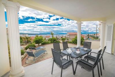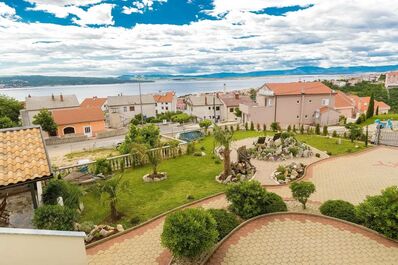 Die im Erdgeschoß gelegene Ferienwohnung 4 in Crikvenica bewohnen Sie mit bis zu 5 Personen. Aufteilung der Ferienwohnung: 2 Schlafzimmer, Bad mit 2 Duschen, Küche, Wohnzimmer mit Schlafcouch für 2 Kinder, zwei große Terrassen mit Liegestühlen und Gartensitzgruppe. Von der Ferienwohnung genießen Sie einen tollen Meerblick auf die Adria sowie die vorgelagerte Insel Krk.